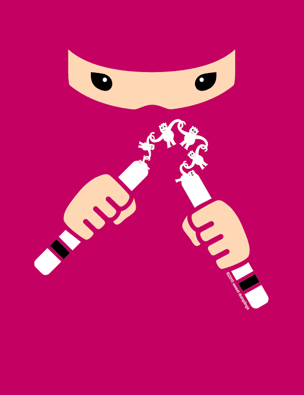 Kids are like little ninjas in their own right. Leaving their mark around the house, then disappearing without a trace. In this design our barrel of alien characters converted the traditional nunchuck into FUN-chucks! Our girl funchucks design will make the boys think twice – GIRL POWER!