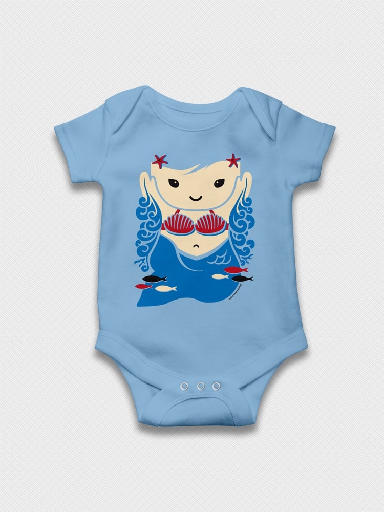 Lil mermaid design has a classic feel with Japanese artist Hokusai – wood block inspired water graphic.